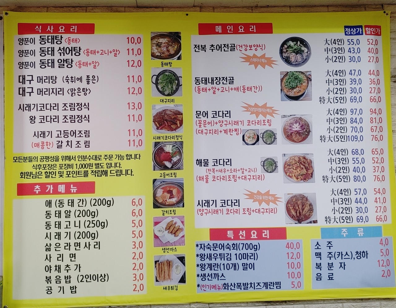생생정보통 맛집 오늘방송 문어코다리조림으로 소개된 성호네왕코다리동태탕에는 방송에 나온 메뉴 외에도 다양한 메뉴가 준비되어있습니다.